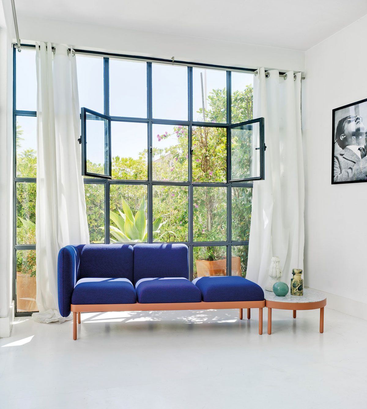 The optional backs enable the pieces to be transformed into mini-sofas.